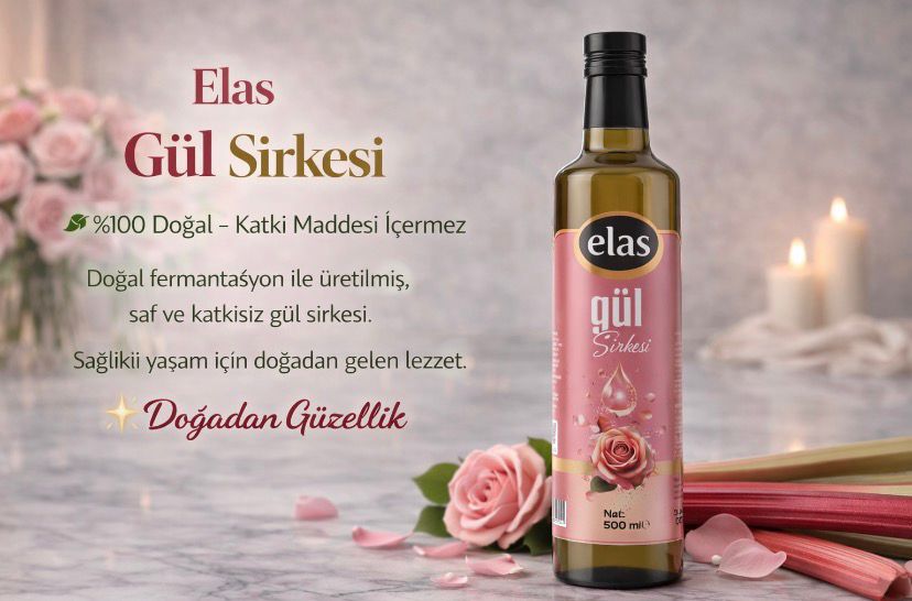 Güllerin zarafeti ve doğanın şifası tek şişede! Katkısız, saf ve %100 doğal fermente Elas Gül Sirkesi ile sağlığınıza ve güzelliğinize taptaze bir dokunuş yapın.