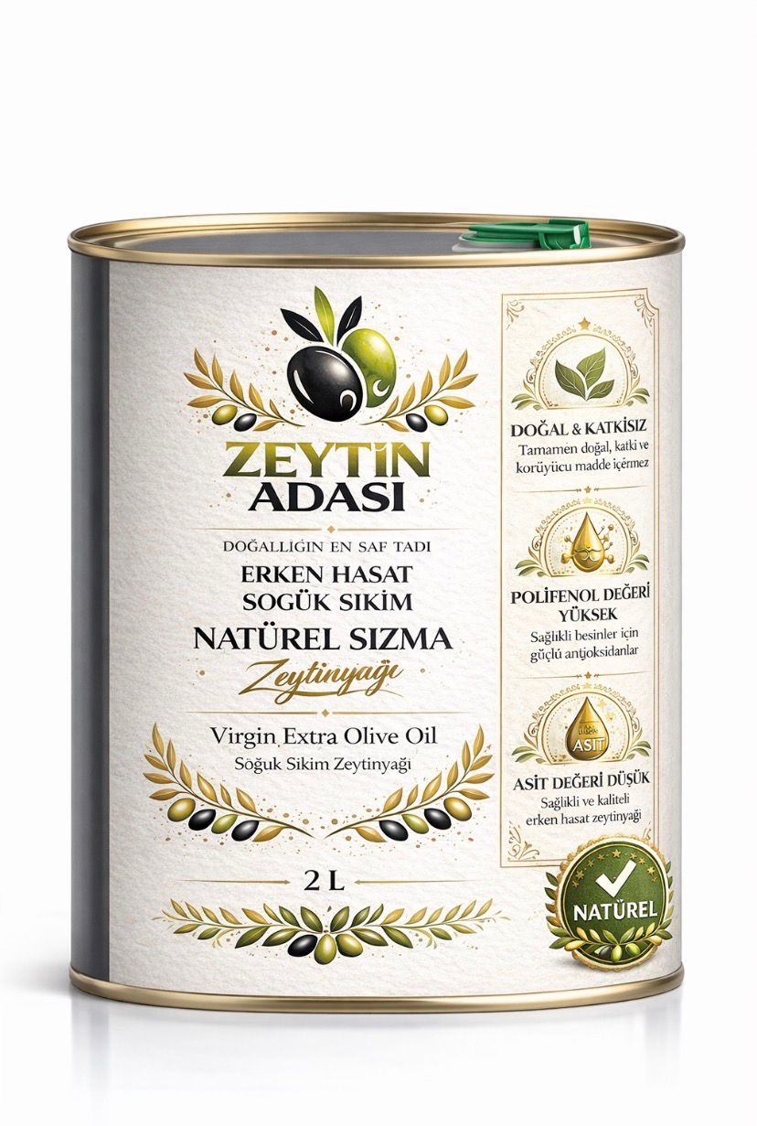 Zeytin Adası Erken Hasat Soğuk Sıkım Natürel Sızma Zeytinyağı – Yuvarlak Teneke (2 Litre)