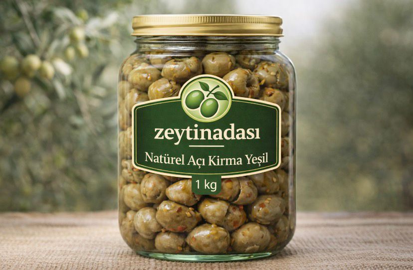 Zeytinadası Natürel Acı Kırma Yeşil Zeytin (1 kg)